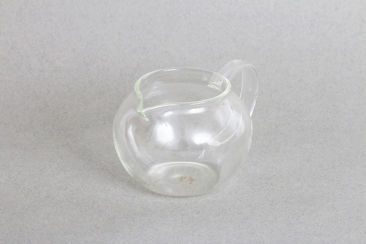 Круглый стеклянный чахай от фабрики Ши Као. В стеклянном чахае виден цвет чайного настоя.